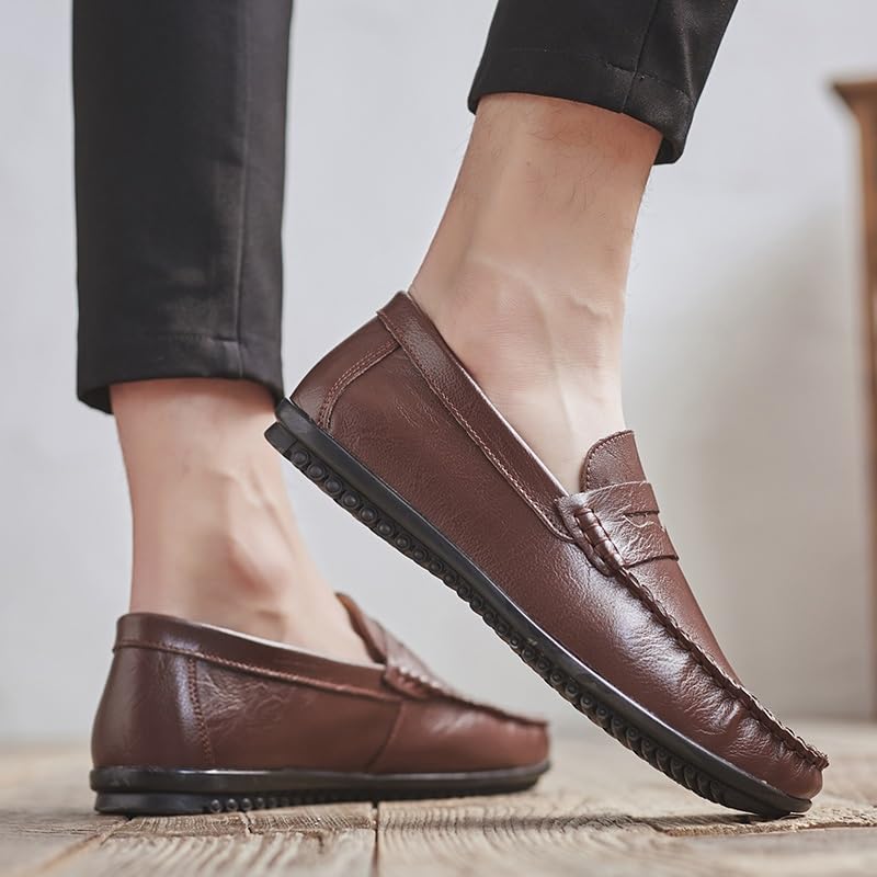Men's Loafers Shoes Solid Color Round Toe Leather Penny Loafers Anti-Slip Comfortable Flexible Walking Slip-ons 6