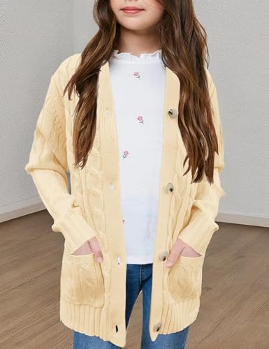 Girls Long Sleeve Casual Cardigan Kids Open Front Knit Sweater with Pockets 6