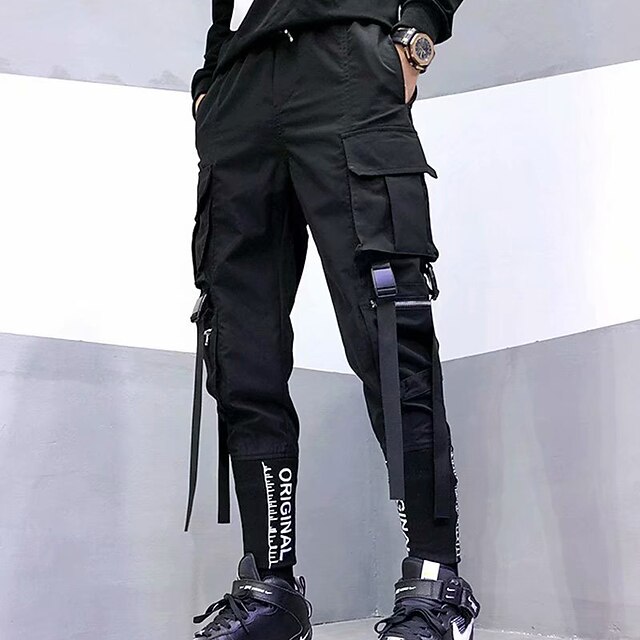 More information about Men's Cargo Pants Cargo Trousers Joggers Trousers Techwear Elastic Waist Classic Multi Pocket Letter Plain Embroidery Comfort Outdoor Full Length Casual Daily Streetwear Stylish Loose Fit Black