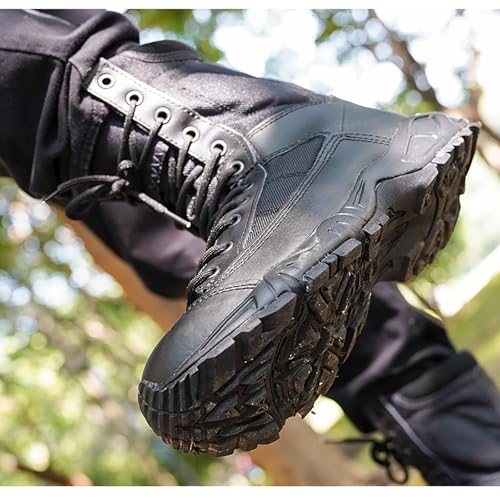 Men Military Tactical Shoes Outdoor Combat Boots Breathable Walking Boots Camping Lace-up Boots Trekking Hiking,Black-44 4