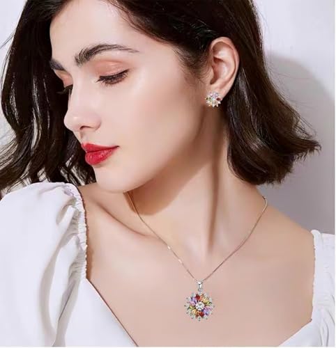 More information about VONSSY Colorful Snowflake Pendant Necklace Earrings Rose Gold 5A Cubic Zirconia | Crystal Sweater Chain | Multi Gemstone Garnet Amethyst Morganite Peridot Prom Rhinestone Necklaces for Women Vintage Stylish Gift