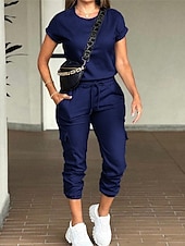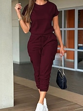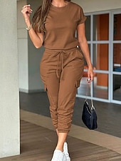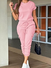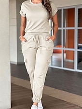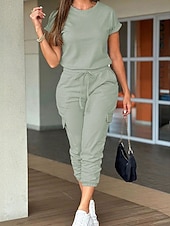 More information about Women's Normal Jumpsuit Streetwear Solid Color Short Sleeve Crew Neck Drawstring Pocket Street Daily Regular Fit Black Light Green Pink Fall