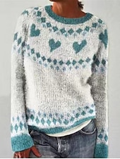 More information about Women's Valentine Sweater Pullover Sweater Jumper Casual Soft Heart Ribbed Crew Neck Knitted Long Sleeve Regular Tops Knit Outdoor Daily Weekend Red Blue Fall Winter