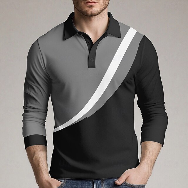 More information about Men's Geometic Line Polo Long Sleeve Polo Shirts Collared Shirts Casual Outdoor Athleisure 3D Print Spring Fall Winter Blue Orange Green