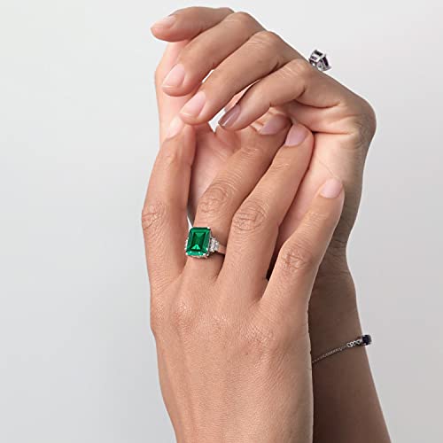 HOT ! Gem Stone King 5-10 Cttw Gemstone Birthstone Engagement Ring For Women | 14X10MM Emerald Cut | 925 Sterling Silver | Wedding Anniversary Promise Ring | Available In Size 5, 6, 7, 8, 9
