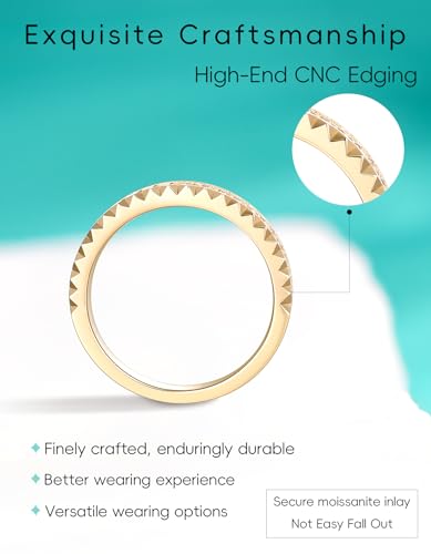 • Perfect Gift: The moissanite rings for women is suitable for wearing as Wedding ring, Wedding band, Promise ring, Anniversary rings, Eternity bands, Stackable rings, etc. It is suitable for Wedding, Engagement, Valentine's Day, Mother's Day, Birthday, Christmas, Anniversaries, Thanksgiving, etc. And it is an excellent gift choice for women, ladies, friends, wives, sisters, mothers, s, etc.