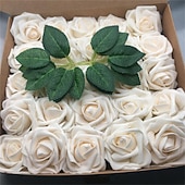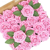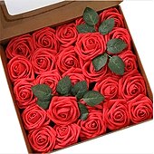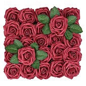 More information about 25pcs Red Roses Artificial Flowers Dark Red Roses Real Touch Foam Fake Roses Bulk With Stem Diy Craft Flowers For Wedding Bridal Bouquets Centerpiece