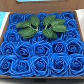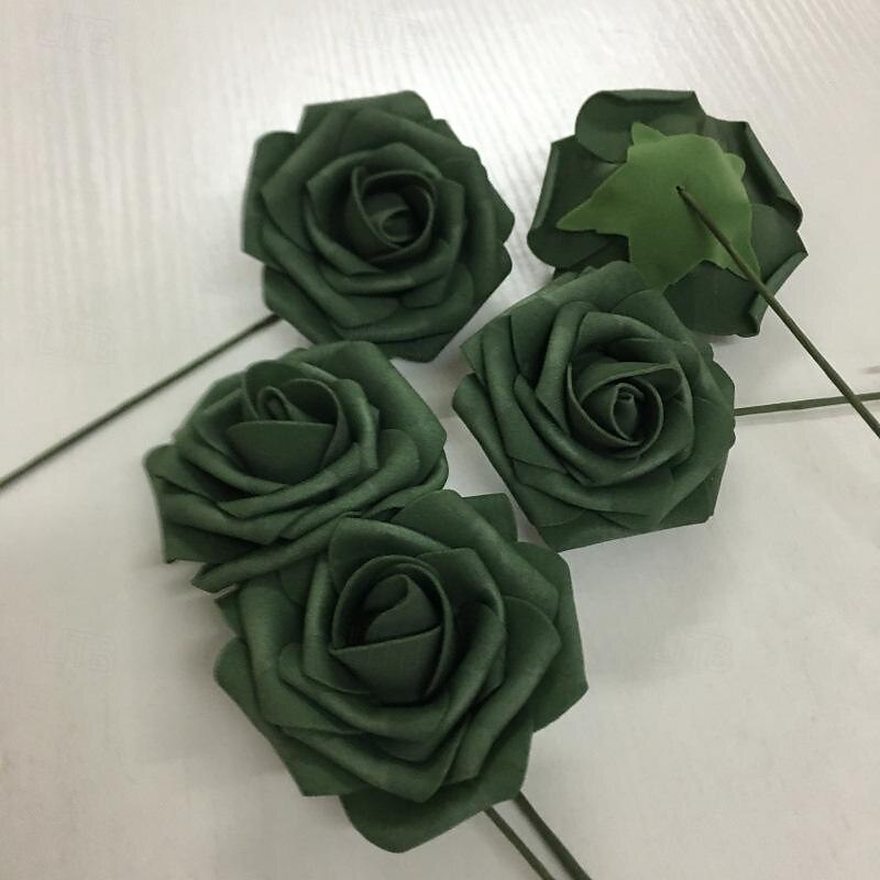 25pcs Red Roses Artificial Flowers Dark Red Roses Real Touch Foam Fake Roses Bulk With Stem Diy Craft Flowers For Wedding Bridal Bouquets Centerpiece 2