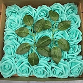 25pcs Red Roses Artificial Flowers Dark Red Roses Real Touch Foam Fake Roses Bulk With Stem Diy Craft Flowers For Wedding Bridal Bouquets Centerpiece 32