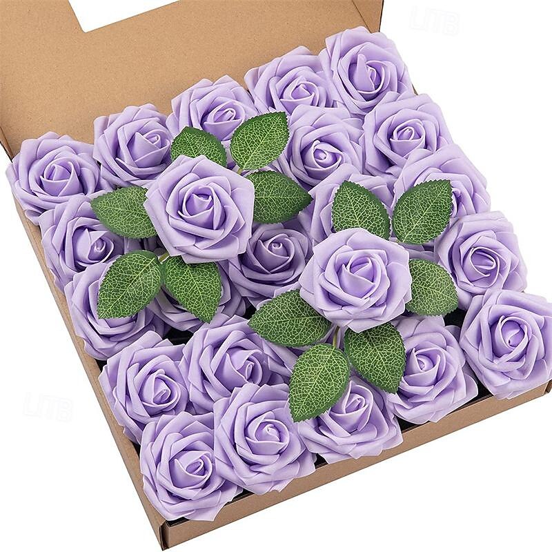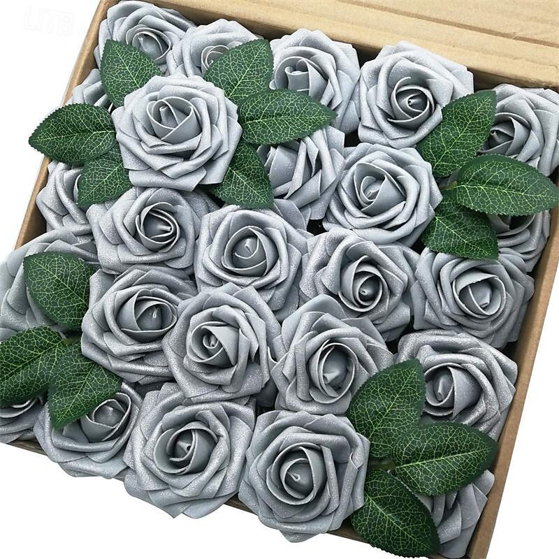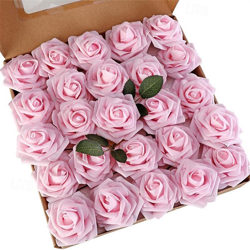 25pcs Red Roses Artificial Flowers Dark Red Roses Real Touch Foam Fake Roses Bulk With Stem Diy Craft Flowers For Wedding Bridal Bouquets Centerpiece 11