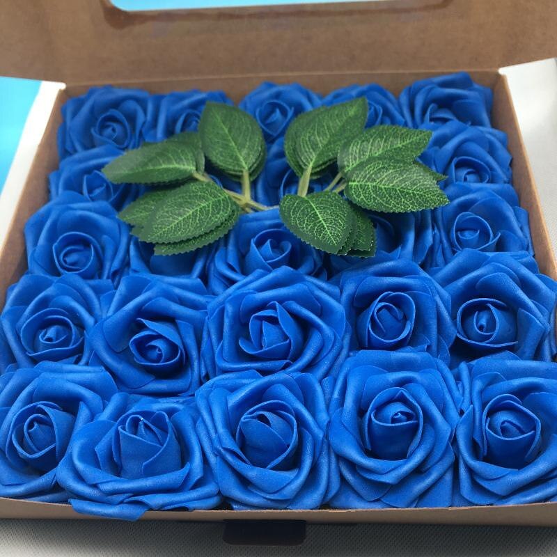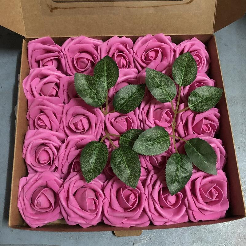 HOT ! 25pcs Red Roses Artificial Flowers Dark Red Roses Real Touch Foam Fake Roses Bulk With Stem Diy Craft Flowers For Wedding Bridal Bouquets Centerpiece