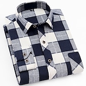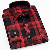 HOT ! Men's Dress Shirt Flannel Shirt Plaid Shirt Collared Shirt Button Up Shirt Tartan Wedding Outdoor Black White Wine Red Long Sleeve Turndown Fall Winter Clothing Apparel