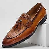 More information about Men's Tan Leather Tassel Loafers – Vintage Slip-On Dress Shoes with Embossed Pattern for Business, Evening Party and Wedding