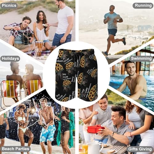 HOT ! Sorry I'm Late I Saw Sunflowers Men's Swim Trunks Quick Dry Board Shorts Hawaiian Beach Shorts With Pocket