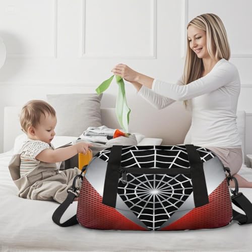 HOT ! Gym Travel Duffle Bag for Boys - Red Spider Web Kids Overnighter Weekend Bag with Front Zipper Pocket for School Practice, Teens Carry-On Size Sleepover Bags
