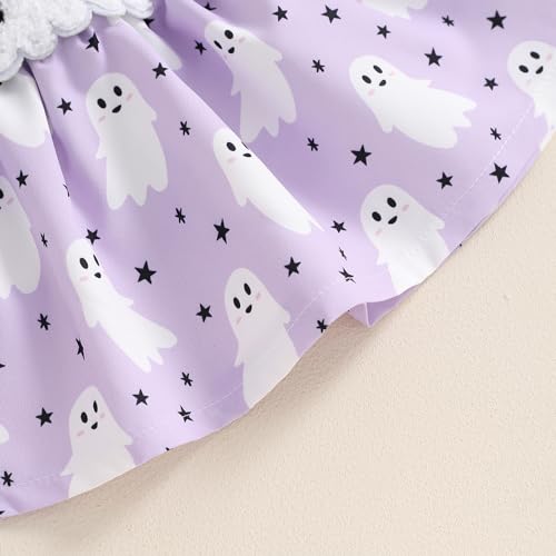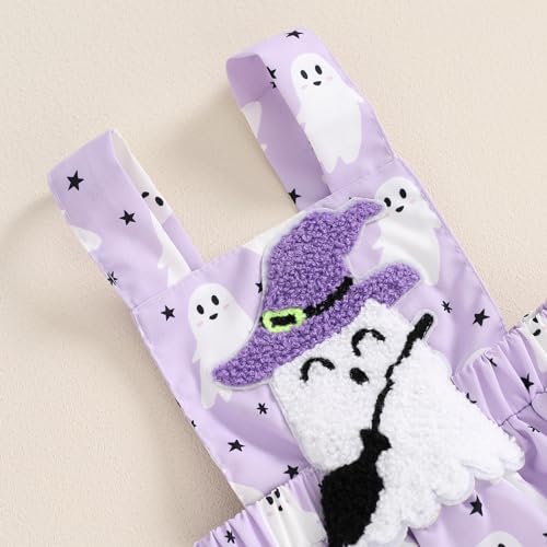 Baby Girl Halloween Outfit Ruffle Long Sleeve Romper Pumpkin Ghost Embroidery Suspender Skirt Overall Dress Set 5