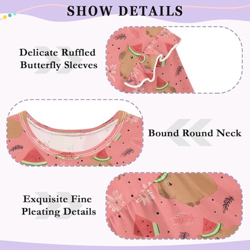 Capybara Watermelon Girls Shirts Cotton Long Sleeve Ruffle Toddler Tee Tops 6