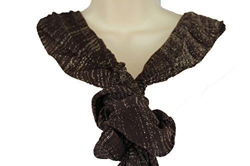 More information about TFJ Women Brown Long Scarf Soft Fabric Gold Sparkling Wave Ruffle Wrap