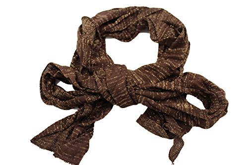 HOT ! TFJ Women Brown Long Scarf Soft Fabric Gold Sparkling Wave Ruffle Wrap