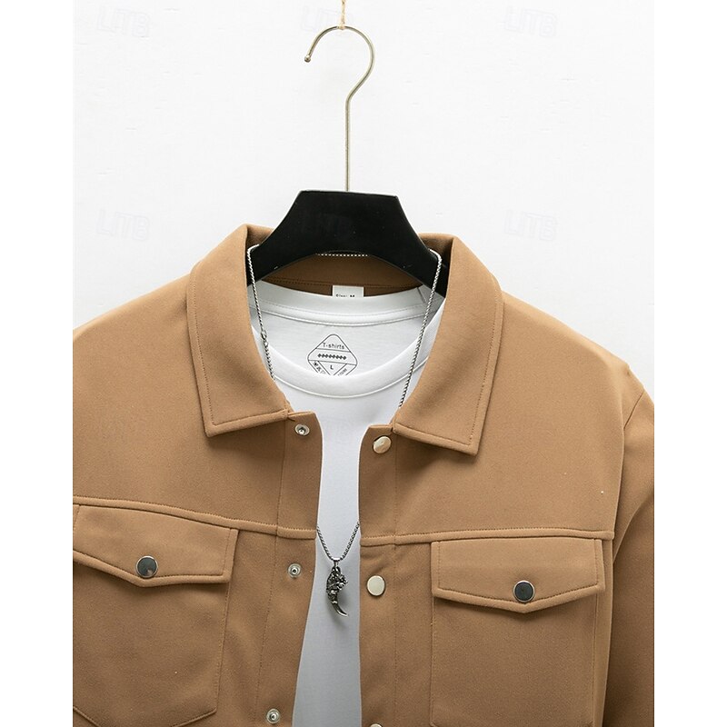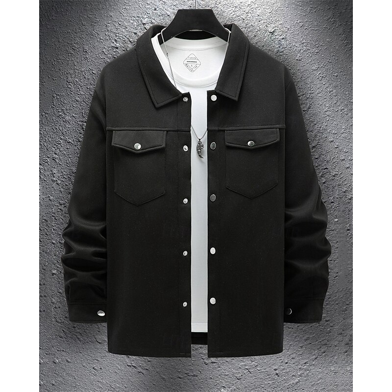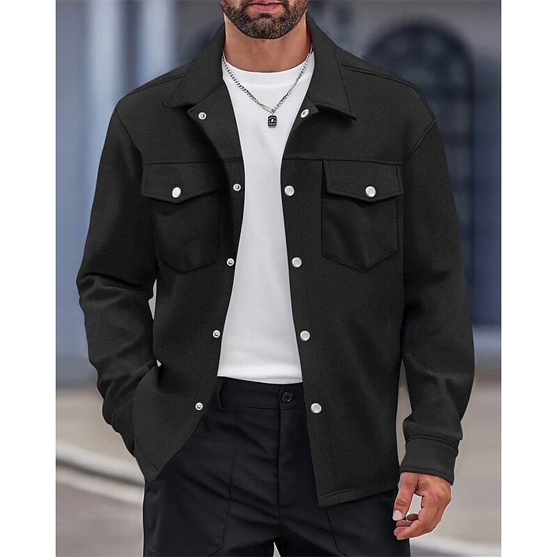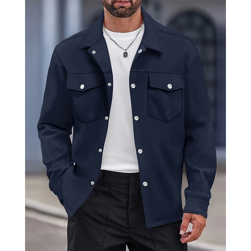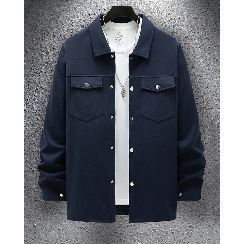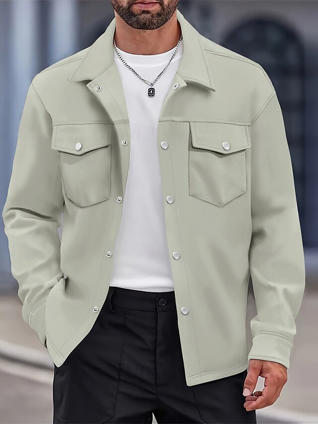 More information about Men's Shirt Jacket Overshirts Transition Jacket Daily Lightweight Pocket Spring Plain Classic Lapel Regular Black Yellow Navy Blue Green Jacket