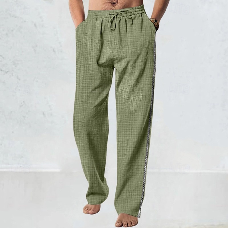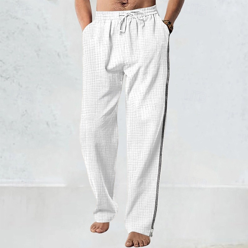 More information about Men's Linen Pants Trousers Summer Pants Beach Pants Drawstring Elastic Waist Straight Leg Plain Comfort Breathable Full Length Casual Daily Holiday Fashion Classic Style White Navy Blue