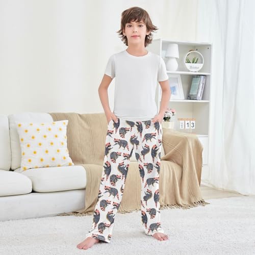 ZZXXB Raccoon Pattern Boys Long Pants Soft Trousers Elastic Waist Kids Lounge Bottoms with Pockets S-XL 1