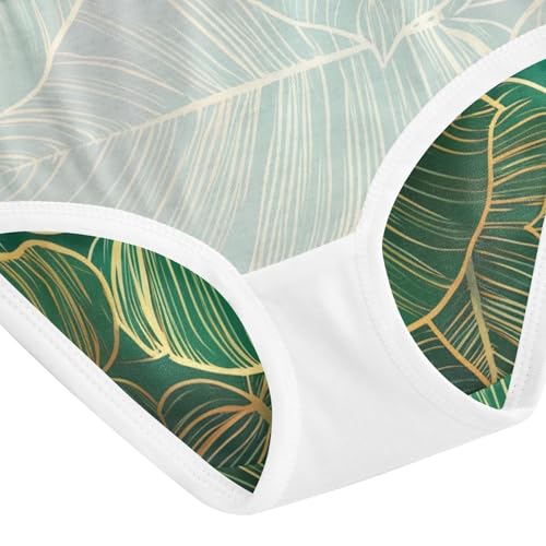 Tropical Leaves Gold Dark Green Teal Panties for Girl Girls Underwear Toddler Cotton Florals Underpants Briefs 2t 5