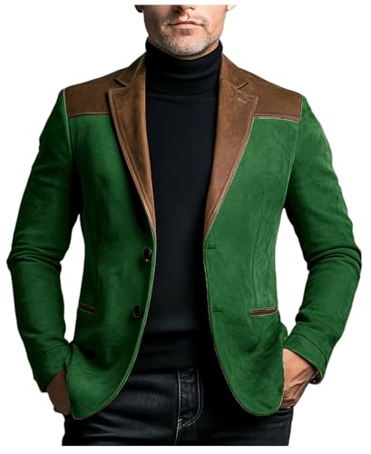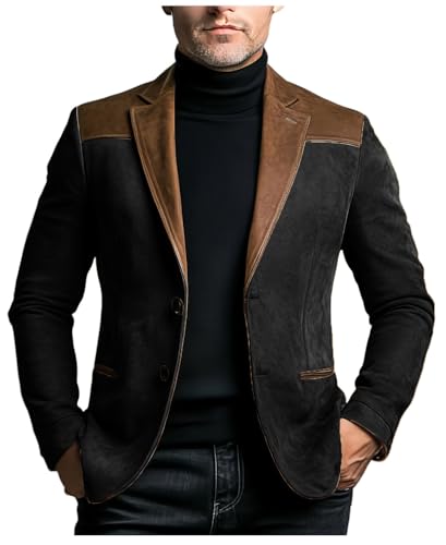 More information about VENNYNG Men's Faux Suede Suit Jacket with PU Leather Shoulder Patchwork Motorcycle Coat