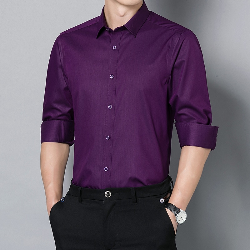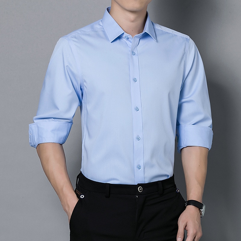 More information about Men's Work Shirt Non Iron Shirt Solid / Plain Color Wedding Office & Career Light Blue Black White Dark Navy Long Sleeve Turndown All Seasons Clothing Apparel