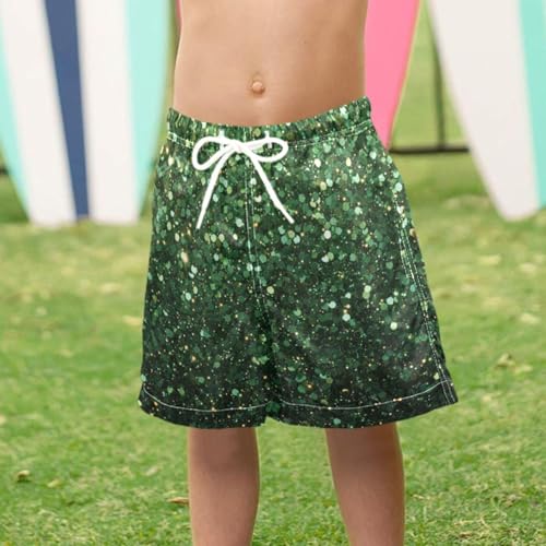 Pigsaly Boys Swim Trunks Emerald Green Forest Green Gradient Flashing Glitter Boys Board Shorts Swimsuit Swimwear 5T 3