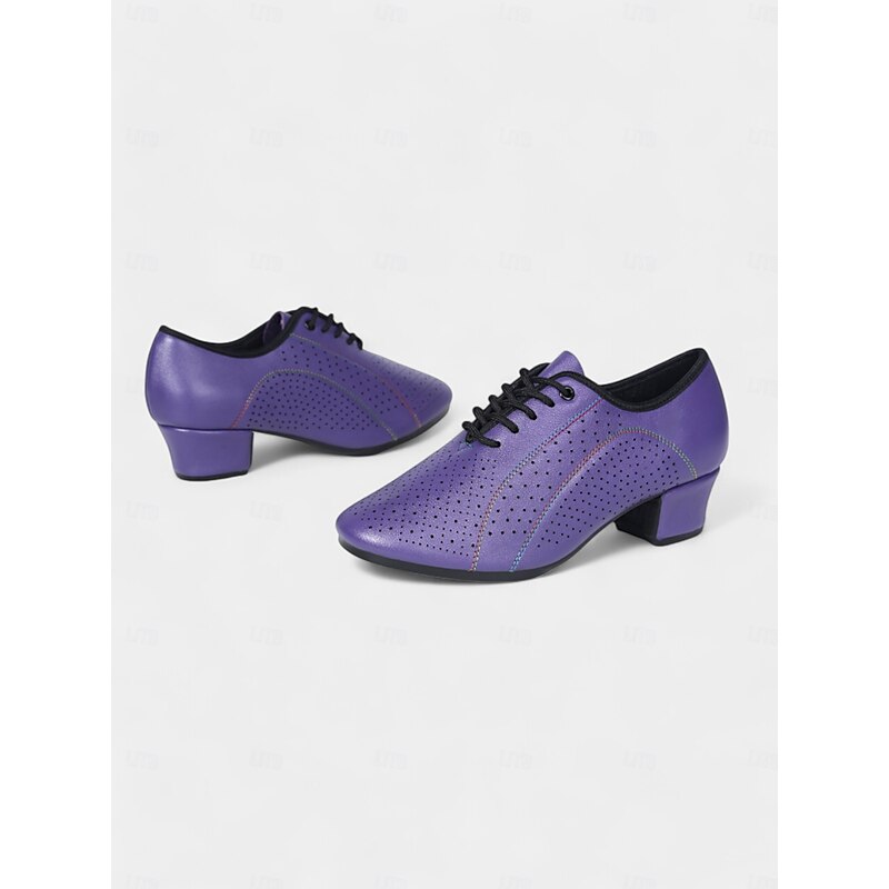 Women's Purple Perforated Leather Dance Shoes - Lace-Up Low Heel Jazz Shoes for Ballroom and Latin Dance 1