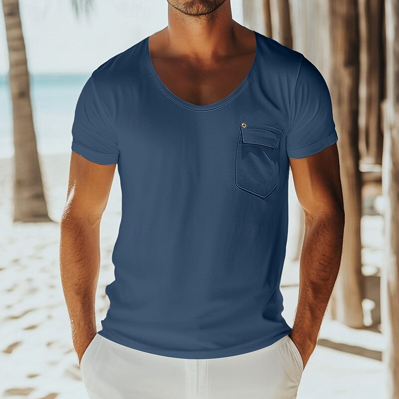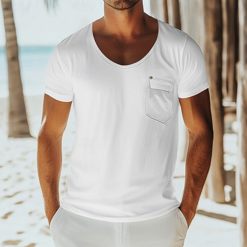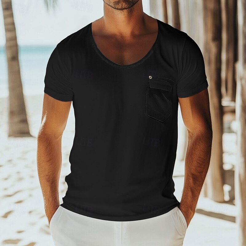 More information about Men's T Shirt Tee Top Short Sleeves Scoop Neck Crewneck Summer Solid Color Fashion Designer Basic Pocket Vacation Street Casual Black White Blue Top Tee for Men