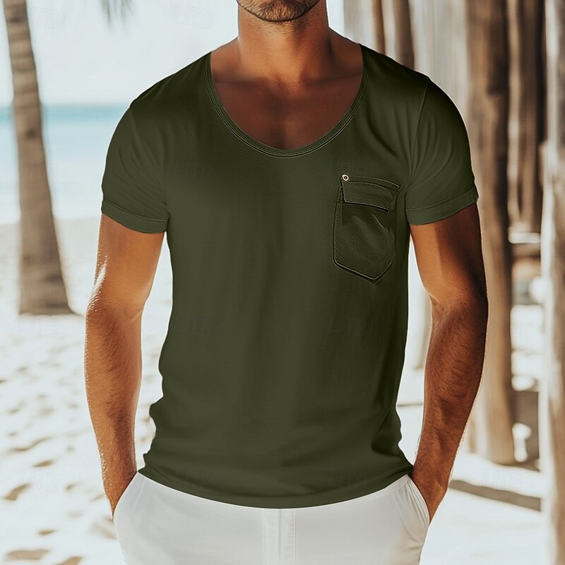 Men's T Shirt Tee Top Short Sleeves Scoop Neck Crewneck Summer Solid Color Fashion Designer Basic Pocket Vacation Street Casual Black White Blue Top Tee for Men 14