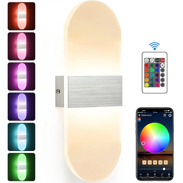 LED Dimming Wall Lamp, 15.6in RGB WIFI Bluetooth 2.4G 10W Indoor Smart Acrylic Wall Lamp APP Control Compatible with Alexa and Google home Assistant without Hub Suitable for Bedroom Corridor 9