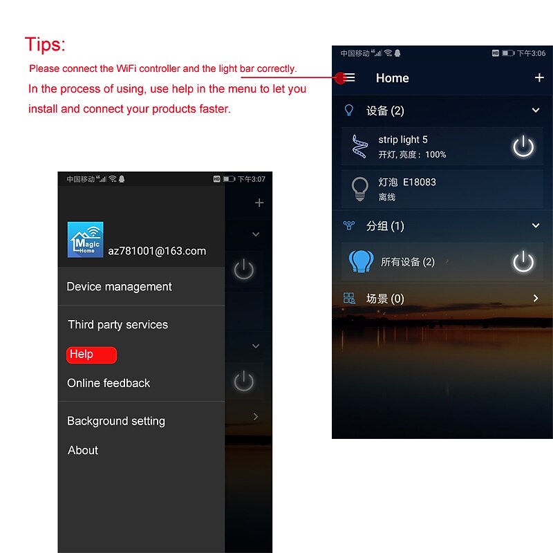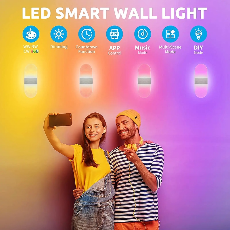 LED Dimming Wall Lamp, 15.6in RGB WIFI Bluetooth 2.4G 10W Indoor Smart Acrylic Wall Lamp APP Control Compatible with Alexa and Google home Assistant without Hub Suitable for Bedroom Corridor 5