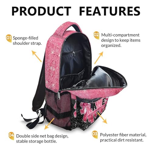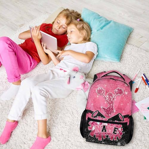 HOT ! Cheer School Backpack for Girls Cheerleaders, Personalized Pink Glitter Backpacks for Kids Teams Kindergarten Preschool, 17 Inch Lightweight Custom Bookbag, Back to School Gift