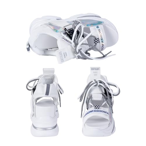 • [UNIQUE DESGIN]: Our women's platform sandals for the seamlessly blend fashion and function. The glossy material on the sides of these thick soled sandals can reflect a brilliant shine, making you more charming and eye-catching!