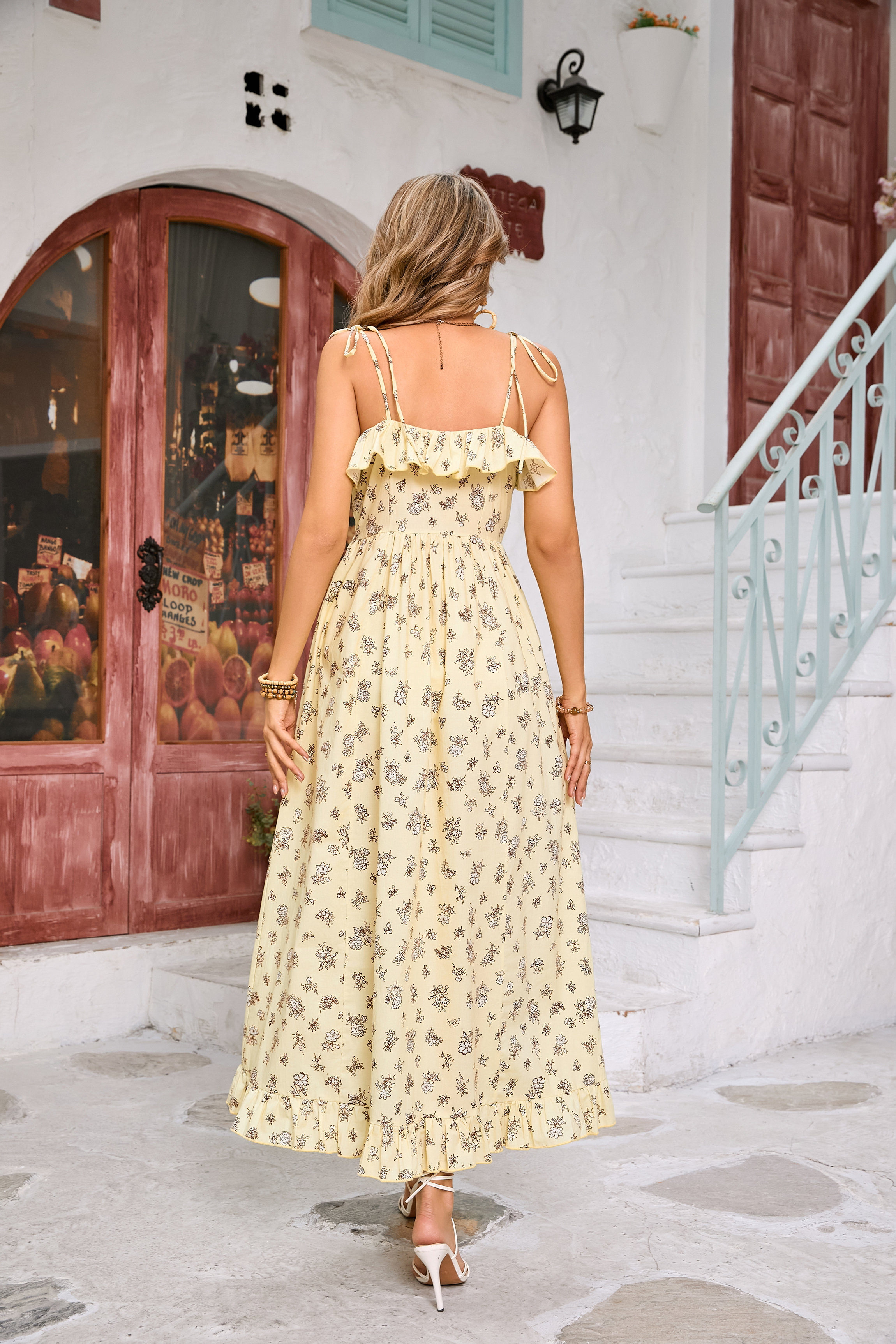 R.Vivimos Womens Summer Boho Midi Dress Cotton Floral Print Adjustable Spaghetti Strap Casual A-Line Ruffle Flowy Beach Dress 4