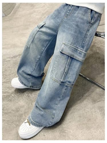 HOT ! Verdusa Boys Jeans Baggy Vintage Straight Leg Denim Cargo Pants with Pockets 8-14 Years