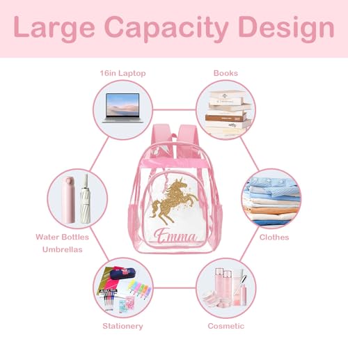 HOT ! Personalized Clear Backpacks with Name, Custom Unicorn Clear Backpack for Women Men, with Reinforced Strap & Large Capacity PVC Transparent Waterproof Backpacks for Travel Camping Work