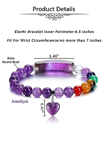 Jovivi 7 Chakra Bracelets for Women Men Natural Chakra Gemstones 8mm Round Beads Amethyst Crystal Heart Bracelet Reiki Healing Stones Energy Stretch Bracelet Jewelry Gifts 6