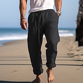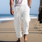 More information about Men's Linen Pants Trousers Summer Pants Drawstring Elastic Waist Plain Comfort Breathable Outdoor Daily Going out Fashion Casual Black White
