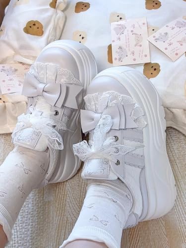 Y2K Chunky Platform Lolita Shoes - Lace-Up Doll Style with Ribbon & Lace, Cute Cake Bottom Sneakers for Girls 6
