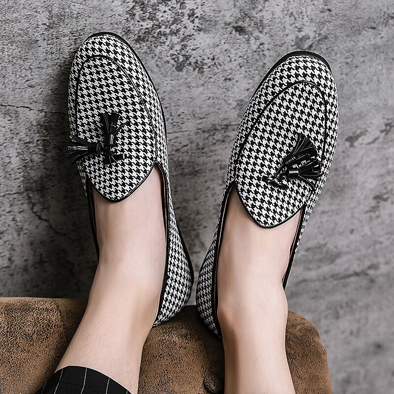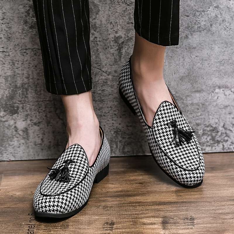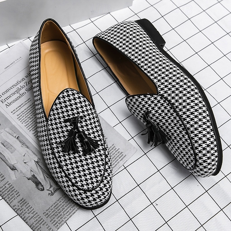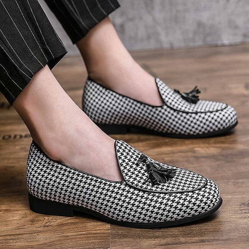 Men's Elegant Houndstooth Loafers with Tassel - Perfect for Weddings and Parties 22