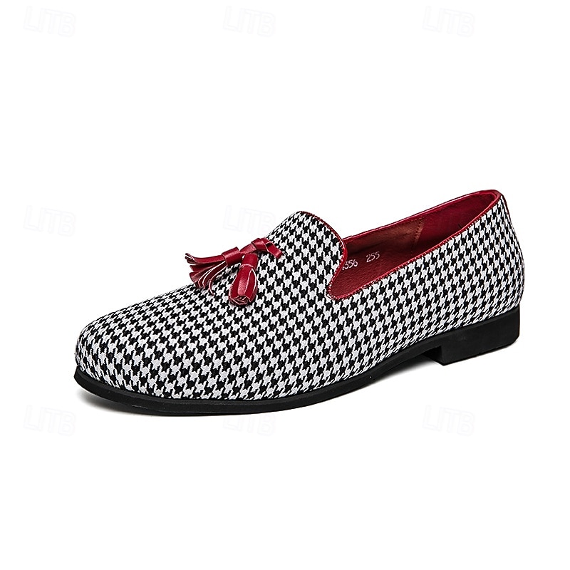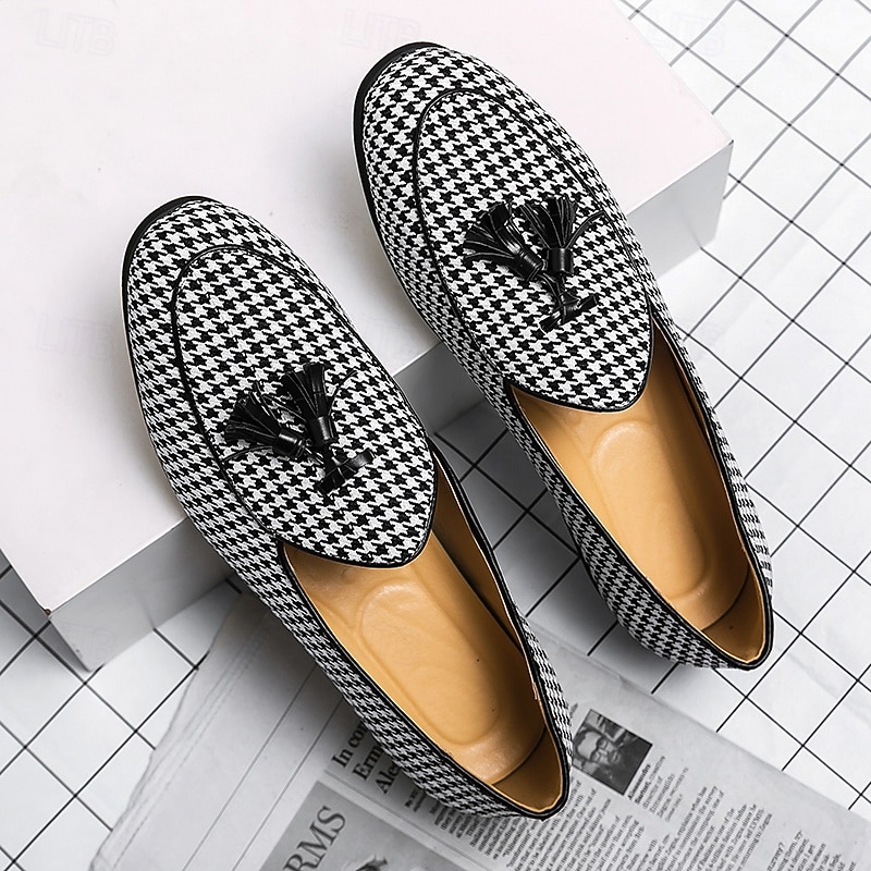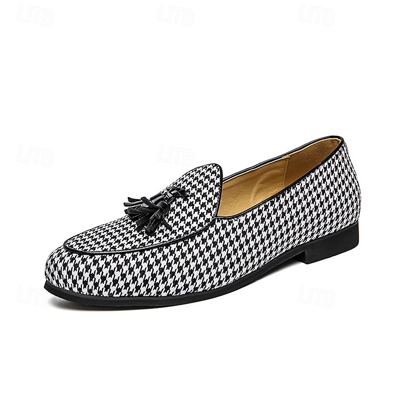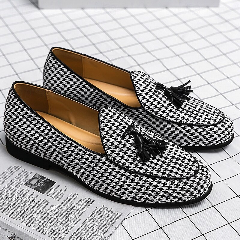 Men's Elegant Houndstooth Loafers with Tassel - Perfect for Weddings and Parties 1