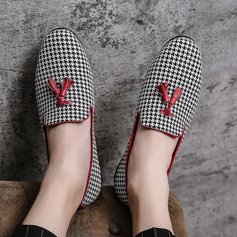 Men's Elegant Houndstooth Loafers with Tassel - Perfect for Weddings and Parties 23