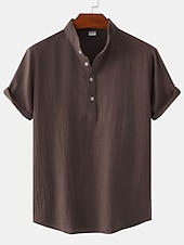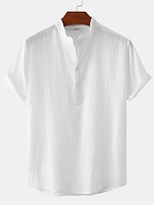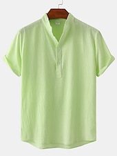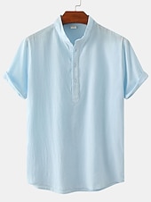 More information about Men's Shirt Chinese Collar Shirt Mandarin Collar Shirt Summer Shirt Casual Shirt Black White Light Green Blue Orange Short Sleeve Plain Band Collar Vacation Daily Clothing Apparel Cotton Cotton Blend