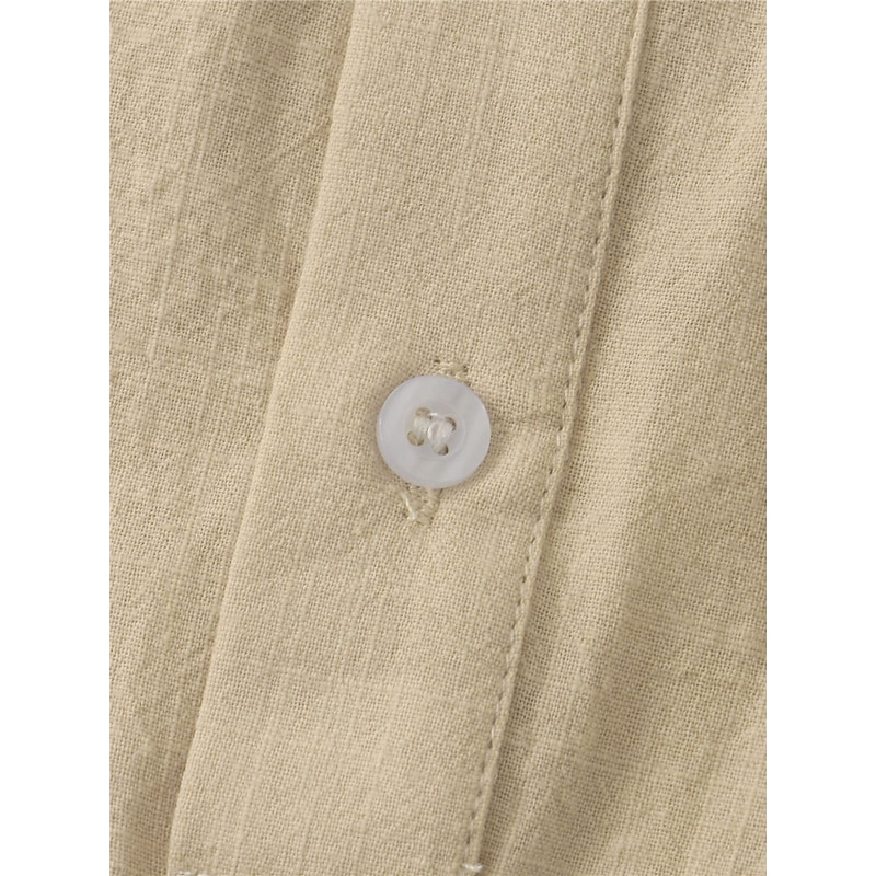: Featuring a contemporary band collar, the shirt delivers a modern twist on classic styles. The button placket stops mid-torso, offering ease of wear and a relaxed feel. Available in a range of solid colors including blue, brown, white, black, orange, light green, and khaki, this shirt is perfect for adding a pop of color to your wardrobe.