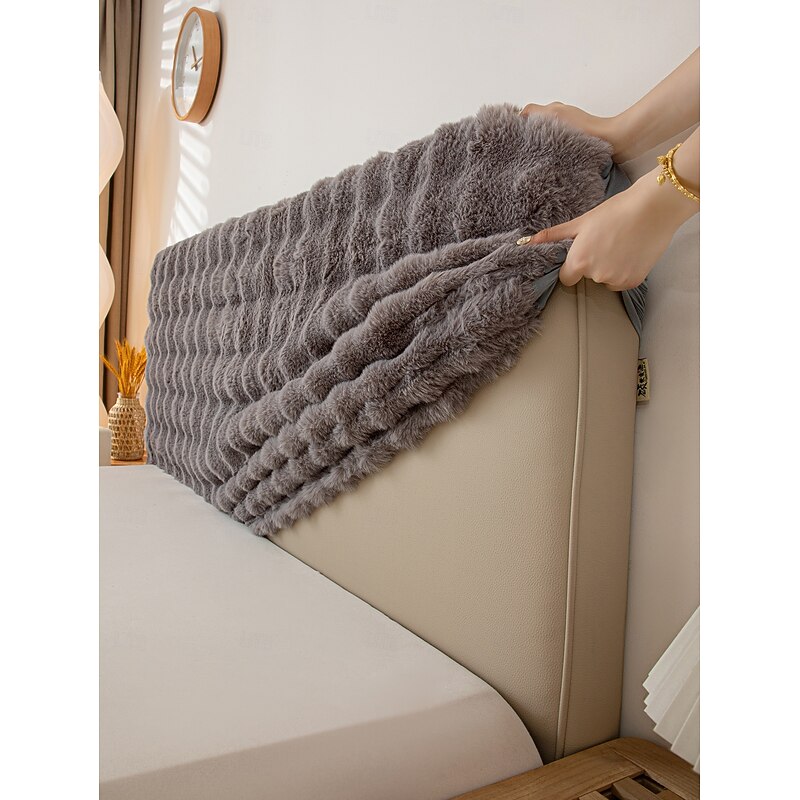 HOT ! 1 Piece Ultra-Soft Rabbit Plush Headboard Cover, All-Inclusive Elastic Protective Slipcover, Simple Dustproof Headboard Backrest Cover for All Seasons