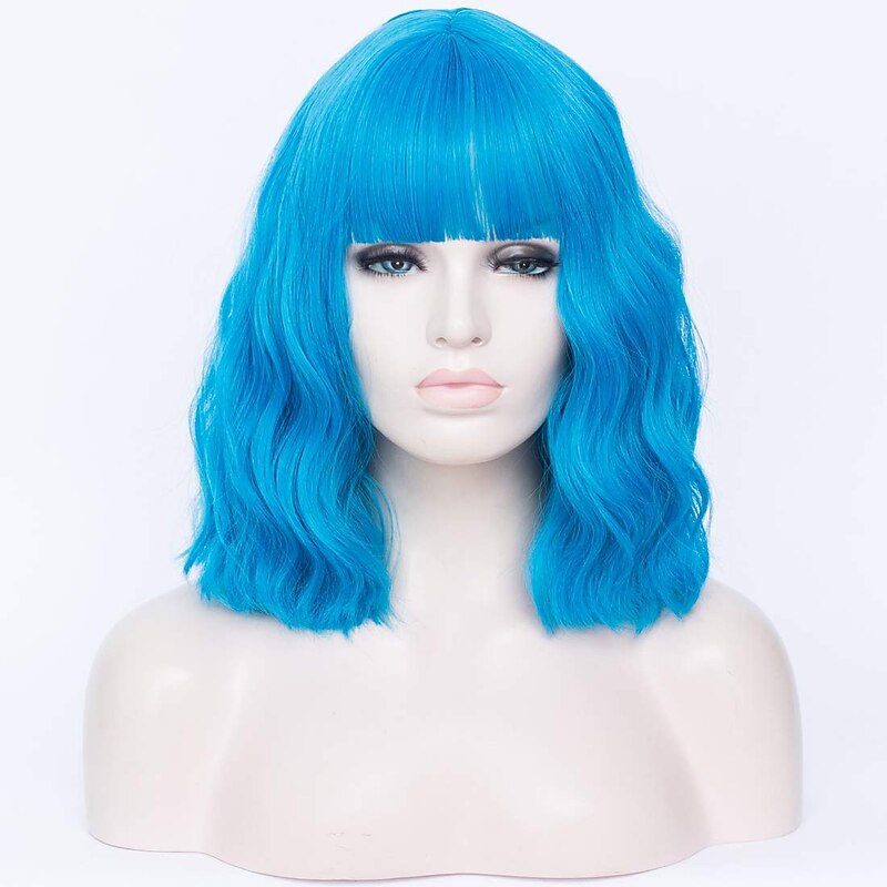 HOT ! Synthetic Wig Wavy Bob Wig Short Pink Synthetic Hair Women's Cosplay Party Fashion Blue Purple Orange